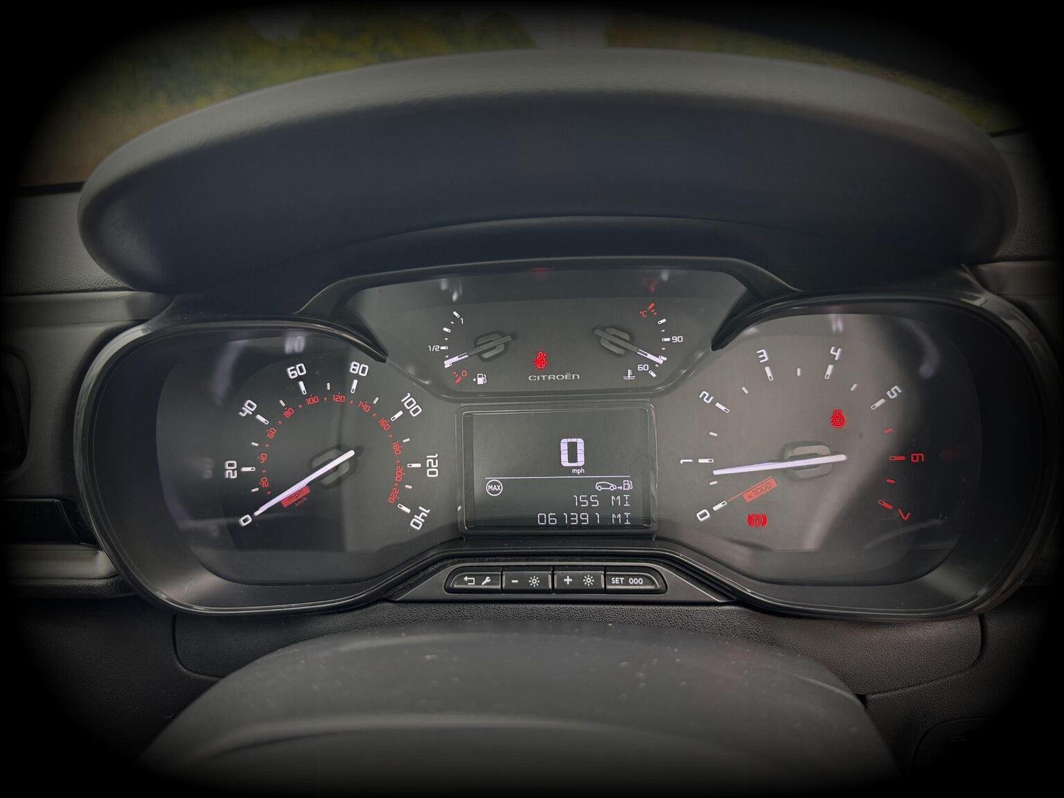 1 USB Socket, 12V Socket, 16in Steel Wheels, 2-3 - 1-3 Split Folding Rear Bench, 3D Rear Lights Signature, ABS - Anti-Lock Braking System, Airbags - Driver, Airbump on Side Door Panel, Anti-Theft Alarm, Automatic Activation of Hazard Warning Lights in Case of Severe Deceleration, Automatic Air Conditioning, Automatic Door and Boot Locking when in Motion, Black Colour Pack, Body Colour Door Handles, Body Colour Front and Rear Bumpers, Boot Light, Central Locking with Locked Indicators and Interior One-Touch Lock Button, Chrome Decoration on Front Face - Under Chevrons and around Daytime Running Lights, Citroen Connect DAB Radio with 6 Speakers, Citroen Illuminated Signature in LED Headlights and LED Daytime Running Lights, Coffee Break Alert, Cruise Control with Speed Limiter, Day-Night Switchable Interior Rear View Mirror, Driver and Front Seatbelts with Pyrotechnic Pretensioners and Force Limiters, Drivers and Passengers Sunvisor with Courtesy Mirror - Non Illuminated, ESP - Electronic Stability Programme with Anti-Skid System, Electric Child Locks, Electrically Adjustable - Heated Folding Door Mirrors, Fog Lights Integrated into the Front Bumper, Front Electric Windows, Front Head Restraint with Height Adjustment, Front Lighting Panel, Front Passenger Airbag - Can be Deactivated, Front Seats Adjustable with Forward-Back Slide and Adjustable Backrest, Front Side Airbags and Front and Rear Curtain Airbags, Front Windscreen Wiper with Two Speeds and Intermittent Mode Linked to Vehicle Speed, Gloss Black Dashboard with Grey Surround, Height Adjustable Drivers Seat, Height and Reach Adjustable Steering Wheel, Hill Start Assist, ISOFIX Mountings on Outer Rear Seats with Top Tether and Labels Indicating Fixing Points, Instrument Cluster with White LCD and Analogue Gauges, LED Daytime Running Lights, LED Headlights, Lane Departure Warning System, Manual Parking Brake with Chrome Finish Button, Manual Rear Windows, Matt Black B Pillars, Monotone Horn, Multi-Function On-Board Trip Computer, Parcel Shelf, Perla Nera Black Rear View Mirror Caps, Power Assisted Steering, Puncture Repair Kit, Rear Windscreen Wiper with Intermittent Mode Linked to Vehicle Speed, Remote Central Locking with Two Plip Keys, Safety Pack, Seatbelt Unfastened on the Move Audible and Visual Alert for Front and Rear Seats, Soft-Touch Gear Lever with Leather-Effect Gaiter, Standard Ambience, Steering Wheel with Satin Chrome Elements and Audio-Telephone Controls, Three Rear Seats with Headrests, Three Rear Three-Point Seatbelt - Outer Seats have Pretensioners and Force Limiters, Tinted Windows - Side, Tyre Pressure Monitor, Upholstered Armrest in Front and Rear Doors